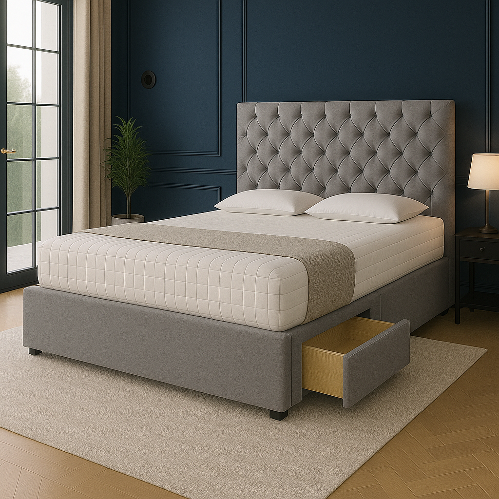Elegant handcrafted beds with optional under-bed storage, featuring a complimentary 26” tall,...